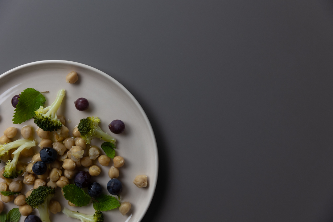 SALADE DE BROCOLIS, MÉLISSE ET POIS CHICHES